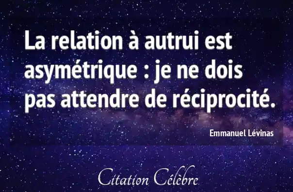 La relation à autrui est asymétrique : je ne dois pas attendre de réciprocité.
