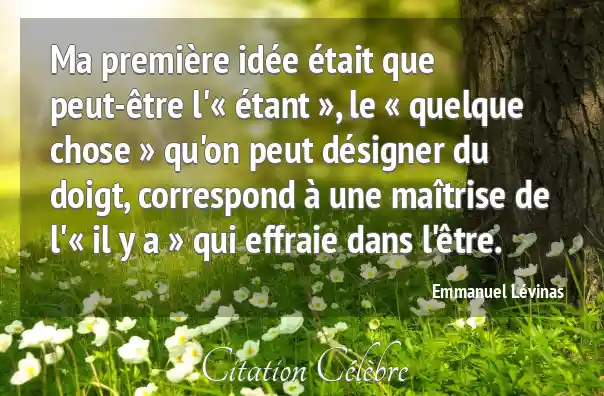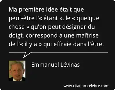 Ma première idée était que peut-être l'« étant », le « quelque chose » qu'on peut désigner du doigt, correspond à une maîtrise de l'« il y a » qui effraie dans l'être.
