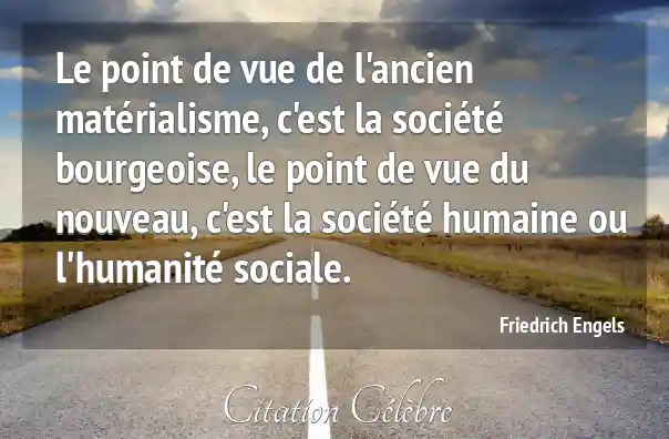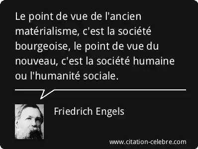 Le point de vue de l'ancien matérialisme, c'est la société bourgeoise, le point de vue du nouveau, c'est la société humaine ou l'humanité sociale.