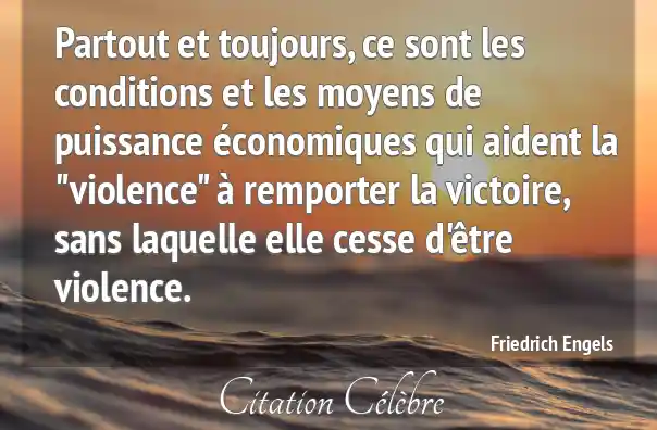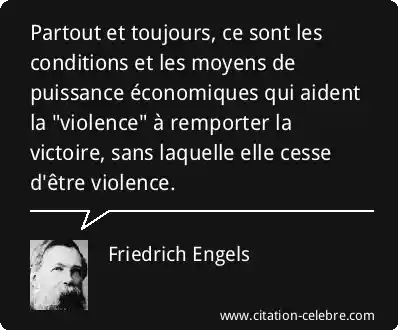 Partout et toujours, ce sont les conditions et les moyens de puissance économiques qui aident la "violence" à remporter la victoire, sans laquelle elle cesse d'être violence.