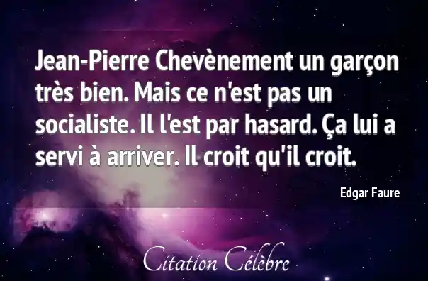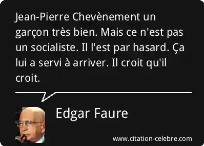 Jean-Pierre Chevènement un garçon très bien. Mais ce n'est pas un socialiste. Il l'est par hasard. Ça lui a servi à arriver. Il croit qu'il croit.