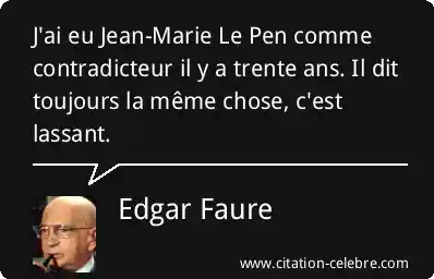 J'ai eu Jean-Marie Le Pen comme contradicteur il y a trente ans. Il dit toujours la même chose, c'est lassant.