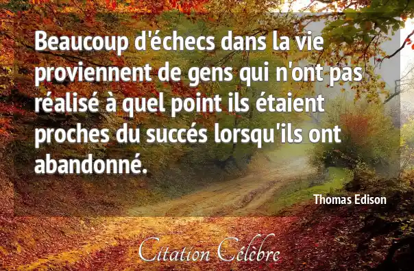 Beaucoup d'échecs dans la vie proviennent de gens qui n'ont pas réalisé à quel point ils étaient proches du succés lorsqu'ils ont abandonné.
