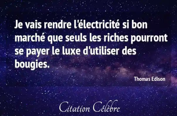 Je vais rendre l'électricité si bon marché que seuls les riches pourront se payer le luxe d'utiliser des bougies.