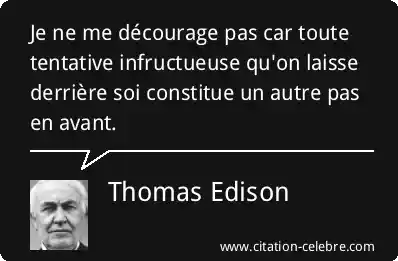 Je ne me décourage pas car toute tentative infructueuse qu'on laisse derrière soi constitue un autre pas en avant.