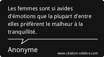 Les femmes sont si avides d'émotions que la plupart d'entre elles préfèrent le malheur à la tranquillité.