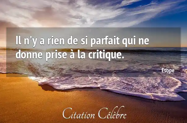 Il n'y a rien de si parfait qui ne donne prise à la critique.