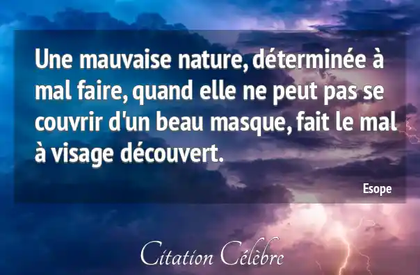 Une mauvaise nature, déterminée à mal faire, quand elle ne peut pas se couvrir d'un beau masque, fait le mal à visage découvert.
