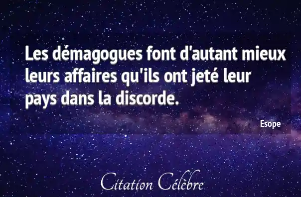 Citation Esope mieux : Les démagogues font d'autant mieux leurs affaires qu'ils ont jeté...