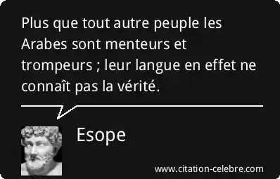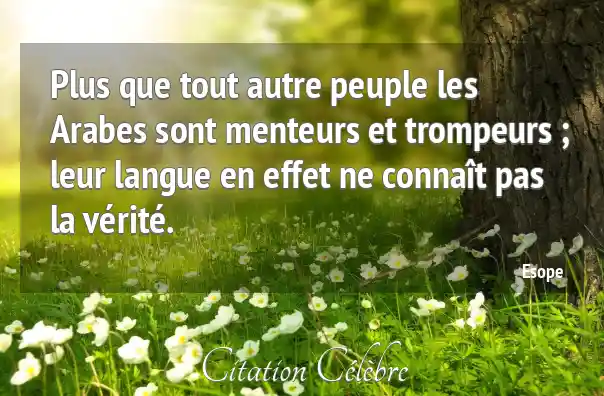 Plus que tout autre peuple les Arabes sont menteurs et trompeurs ; leur langue en effet ne connaît pas la vérité.