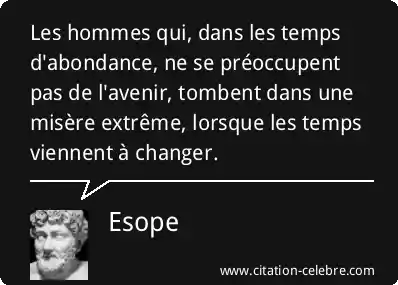 Les hommes qui, dans les temps d'abondance, ne se préoccupent pas de l'avenir, tombent dans une misère extrême, lorsque les temps viennent à changer.