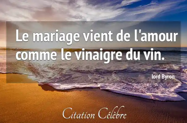 Le mariage vient de l'amour comme le vinaigre du vin.