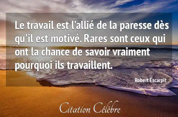 Le travail est l'allié de la paresse dès qu'il est motivé. Rares sont ceux qui ont la chance de savoir vraiment pourquoi ils travaillent.
