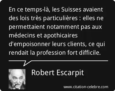 En ce temps-là, les Suisses avaient des lois très particulières : elles ne permettaient notamment pas aux médecins et apothicaires d'empoisonner leurs clients, ce qui rendait la profession fort difficile.