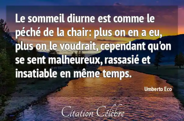 Le sommeil diurne est comme le péché de la chair: plus on en a eu, plus on le voudrait, cependant qu'on se sent malheureux, rassasié et insatiable en même temps.
