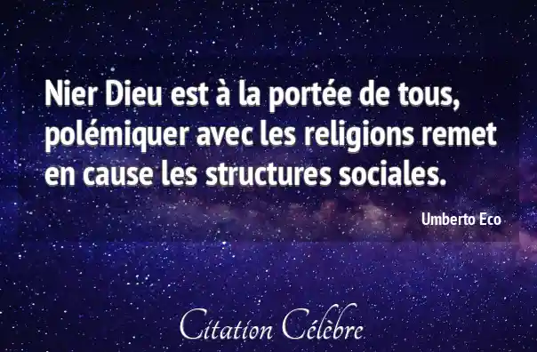 Nier Dieu est à la portée de tous, polémiquer avec les religions remet en cause les structures sociales.