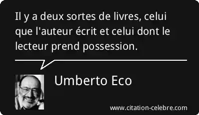 Il y a deux sortes de livres, celui que l'auteur écrit et celui dont le lecteur prend possession.