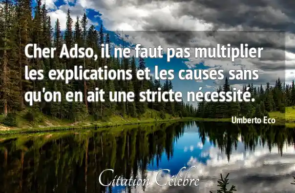 Cher Adso, il ne faut pas multiplier les explications et les causes sans qu'on en ait une stricte nécessité.