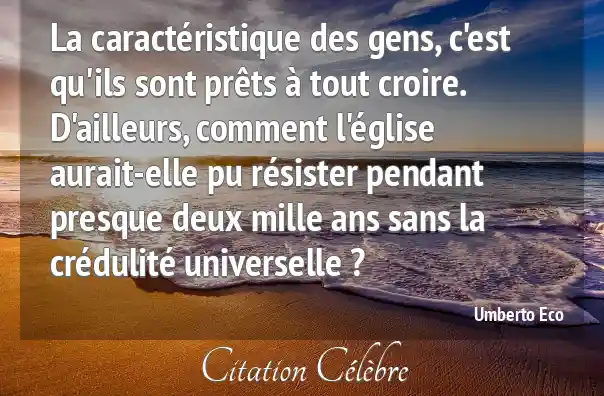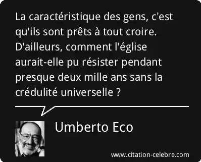 La caractéristique des gens, c'est qu'ils sont prêts à tout croire. D'ailleurs, comment l'église aurait-elle pu résister pendant presque deux mille ans sans la crédulité universelle ?