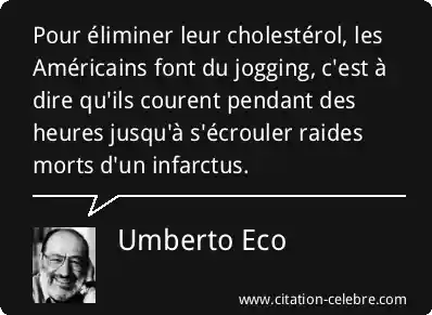 Pour éliminer leur cholestérol, les Américains font du jogging, c'est à dire qu'ils courent pendant des heures jusqu'à s'écrouler raides morts d'un infarctus.