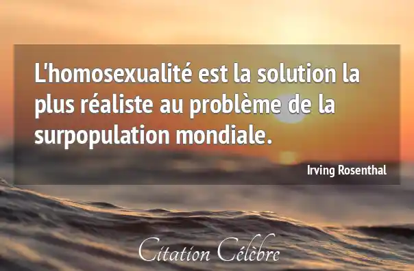 L'homosexualité est la solution la plus réaliste au problème de la surpopulation mondiale.
