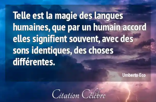 Telle est la magie des langues humaines, que par un humain accord elles signifient souvent, avec des sons identiques, des choses différentes.