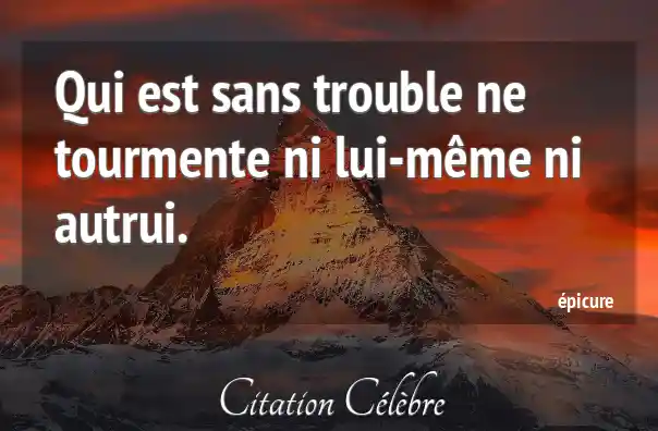 Qui est sans trouble ne tourmente ni lui-même ni autrui.