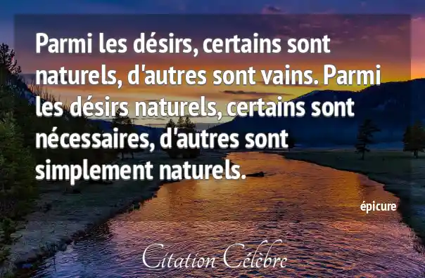 Parmi les désirs, certains sont naturels, d'autres sont vains. Parmi les désirs naturels, certains sont nécessaires, d'autres sont simplement naturels.