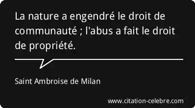 La nature a engendré le droit de communauté ; l'abus a fait le droit de propriété.