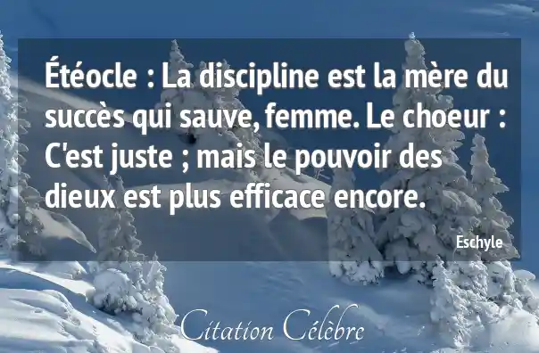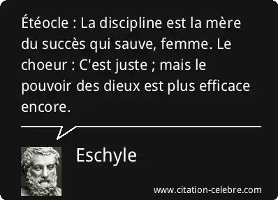 Étéocle : La discipline est la mère du succès qui sauve, femme. Le choeur : C'est juste ; mais le pouvoir des dieux est plus efficace encore.