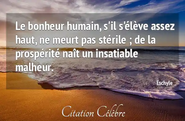 Le bonheur humain, s'il s'élève assez haut, ne meurt pas stérile ; de la prospérité naît un insatiable malheur.