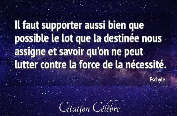 Il faut supporter aussi bien que possible le lot que la destinée nous assigne et savoir qu'on ne peut lutter contre la force de la nécessité.