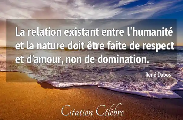La relation existant entre l'humanité et la nature doit être faite de respect et d'amour, non de domination.