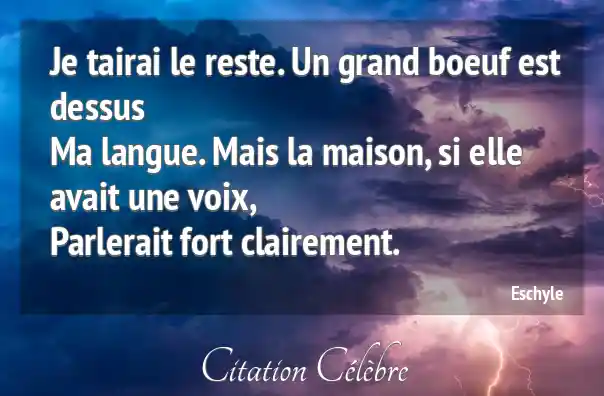 Je tairai le reste. Un grand boeuf est dessusMa langue. Mais la maison, si elle avait une voix,Parlerait fort clairement.