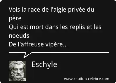 Vois la race de l'aigle privée du pèreQui est mort dans les replis et les noeudsDe l'affreuse vipère...