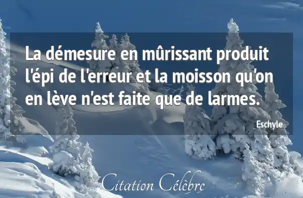 La démesure en mûrissant produit l'épi de l'erreur et la moisson qu'on en lève n'est faite que de larmes.