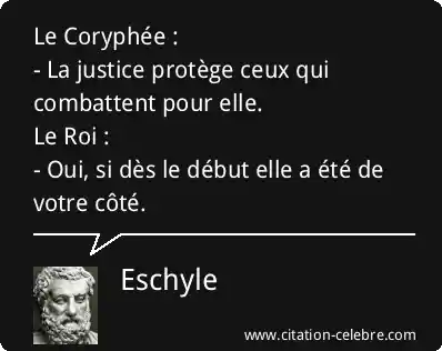 Le Coryphée : - La justice protège ceux qui combattent pour elle.Le Roi : - Oui, si dès le début elle a été de votre côté.