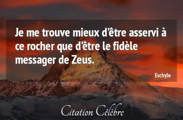 Je me trouve mieux d'être asservi à ce rocher que d'être le fidèle messager de Zeus.
