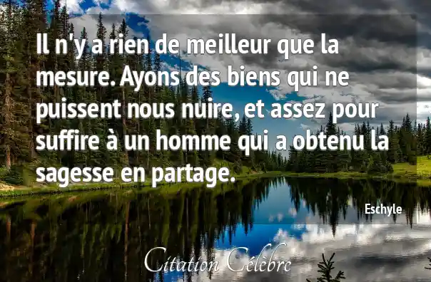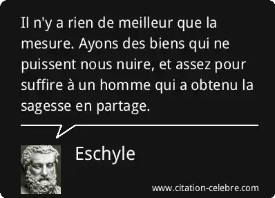 Il n'y a rien de meilleur que la mesure. Ayons des biens qui ne puissent nous nuire, et assez pour suffire à un homme qui a obtenu la sagesse en partage.