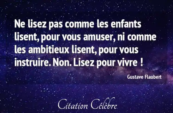 Ne lisez pas comme les enfants lisent, pour vous amuser, ni comme les ambitieux lisent, pour vous instruire. Non. Lisez pour vivre !