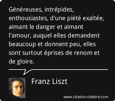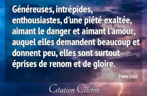 Généreuses, intrépides, enthousiastes, d'une piété exaltée, aimant le danger et aimant l'amour, auquel elles demandent beaucoup et donnent peu, elles sont surtout éprises de renom et de gloire.