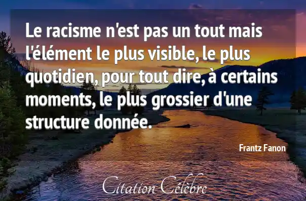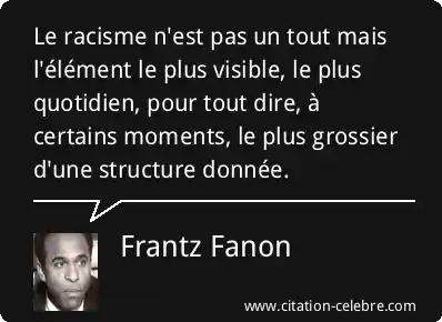 Le racisme n'est pas un tout mais l'élément le plus visible, le plus quotidien, pour tout dire, à certains moments, le plus grossier d'une structure donnée.