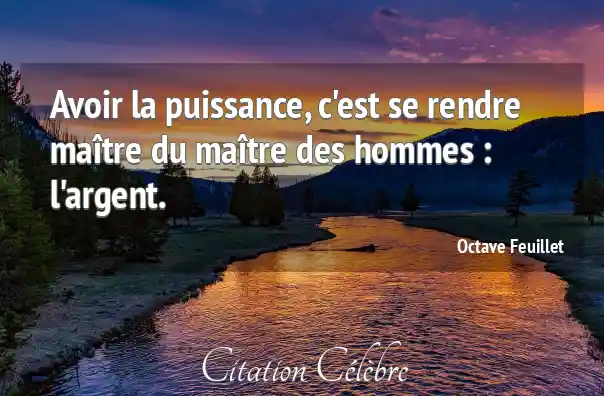 Avoir la puissance, c'est se rendre maître du maître des hommes : l'argent.