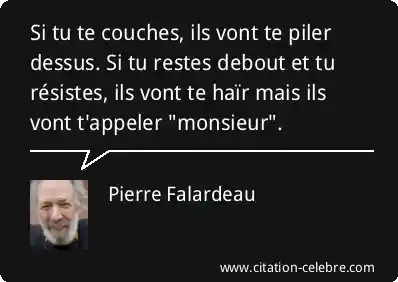 Si tu te couches, ils vont te piler dessus. Si tu restes debout et tu résistes, ils vont te haïr mais ils vont t'appeler "monsieur".