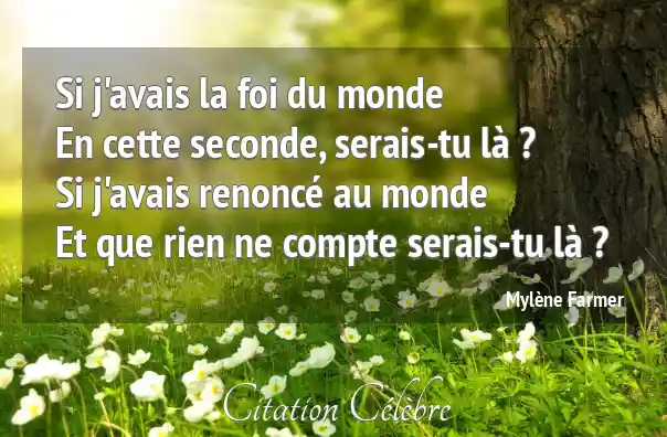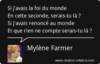 Si j'avais la foi du mondeEn cette seconde, serais-tu là ?Si j'avais renoncé au mondeEt que rien ne compte serais-tu là ?