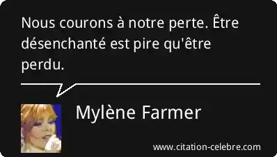 Citation Mylène Farmer perdu : Nous courons à notre perte. Être désenchanté est pire qu'être...