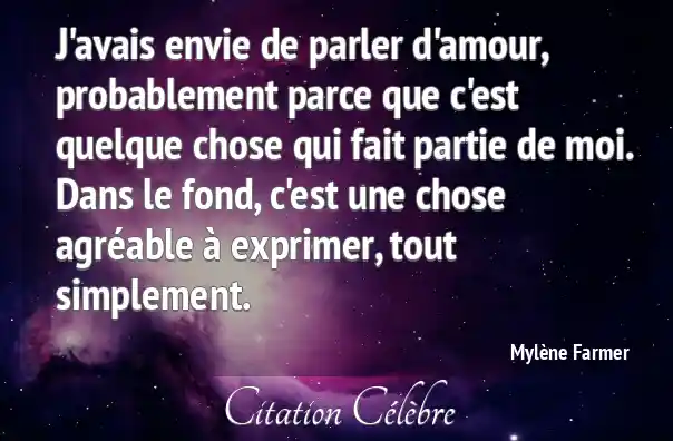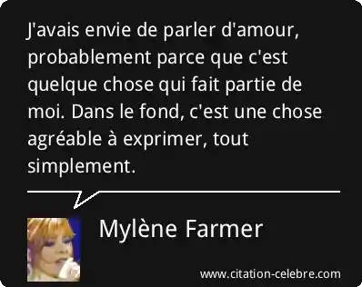 J'avais envie de parler d'amour, probablement parce que c'est quelque chose qui fait partie de moi. Dans le fond, c'est une chose agréable à exprimer, tout simplement.