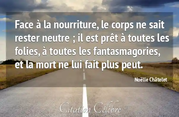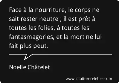 Face à la nourriture, le corps ne sait rester neutre ; il est prêt à toutes les folies, à toutes les fantasmagories, et la mort ne lui fait plus peut.