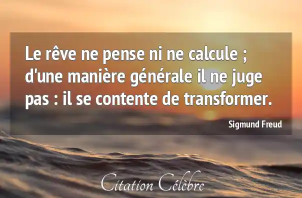 Le rêve ne pense ni ne calcule ; d'une manière générale il ne juge pas : il se contente de transformer.