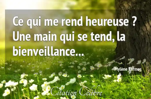 Mylène Farmer : Citation  de Mylène Farmer sur Bienveillance, Main et Heureuse